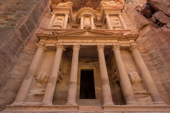 Vous aurez quasiment une journée entière pour explorer Petra avec votre guide, incluant la balade dans le Siq, la visite des sites principaux comme le Trésor, et le déjeuner avant de partir pour Wadi Rum.