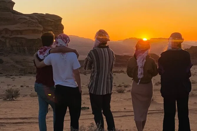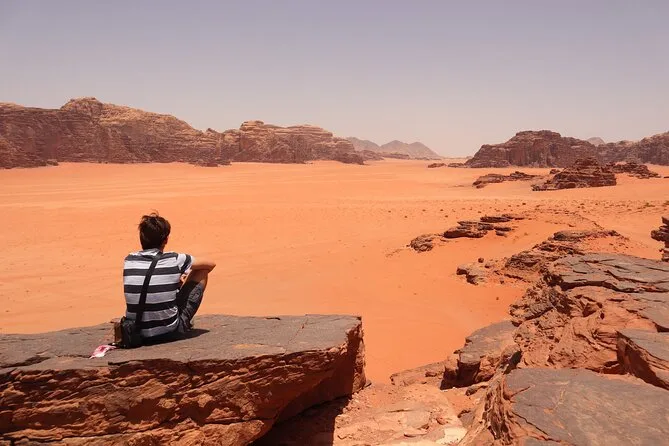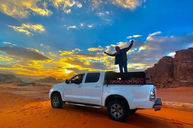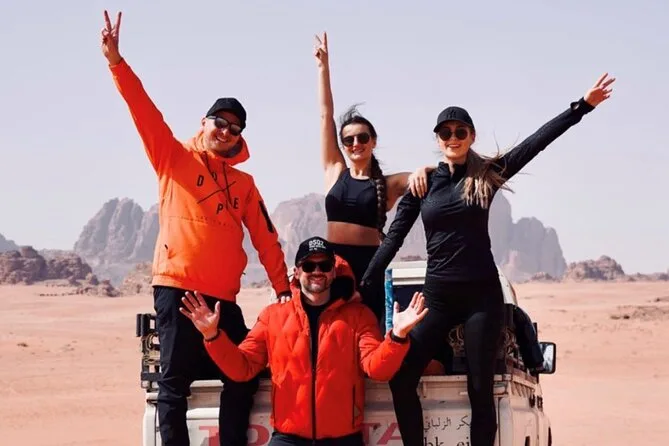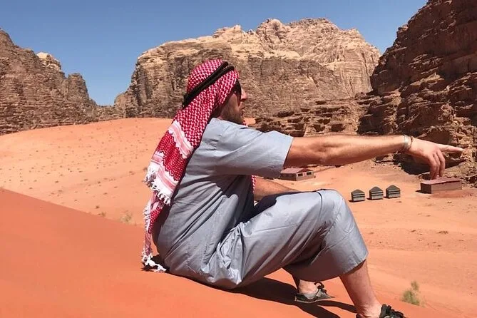 Partez en jeep avec un guide local à travers Wadi Rum, grimpez sur des ponts rocheux, dégustez un déjeuner au feu de bois, admirez le coucher de soleil avec un thé bédouin, et dormez dans votre tente privée sous les étoiles du désert. Rires au dîner et instants de calme qui restent gravés longtemps après.