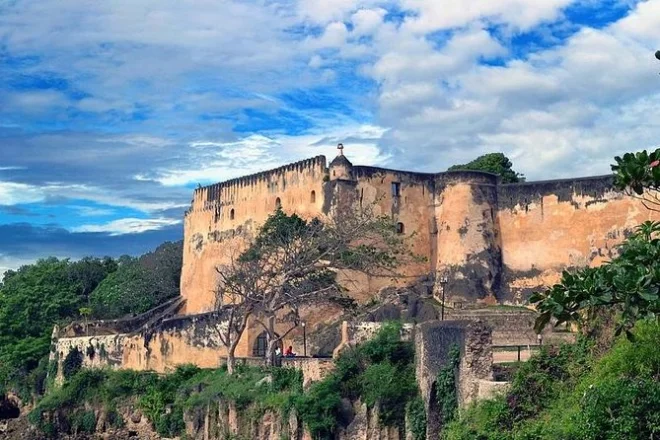 La ville s’éveille tôt ici — dès 8h, les rues bourdonnent déjà alors que nous quittons mon hôtel. Notre chauffeur slalome dans le centre-ville, entre les matatus qui klaxonnent et les enfants en uniforme qui filent entre les étals. L’air est subtilement parfumé de cardamome et de pâte frite quand nous arrivons à Kibokoni, la vieille ville. Le Fort Jesus se dresse là, ses murs épais en pierre encore frais de la nuit. À l’intérieur, notre guide (qui a grandi ici) nous raconte des histoires de soldats portugais et de marchands swahilis. On imagine presque leurs disputes sur le prix des épices dans ces couloirs résonnants.