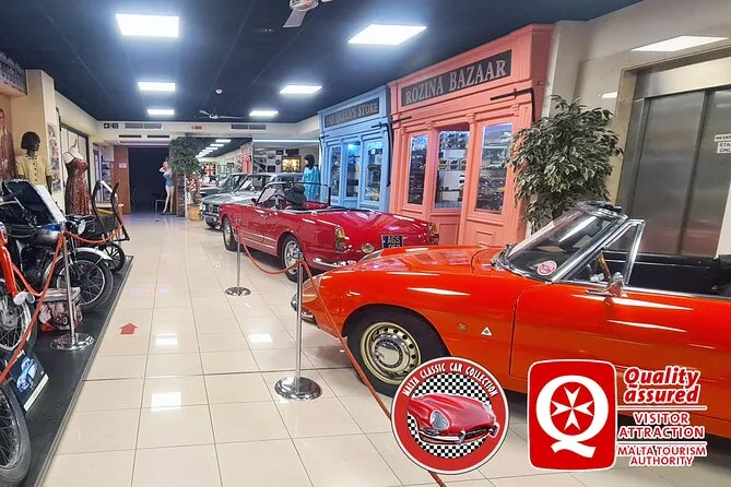 Votre visite inclut un accès rapide à la Malta Classic Car Collection à Qawra — avec entrée à toutes les salles d’exposition, projections de films vintage au cinéma, et vue sur l’atelier de restauration en direct. Tout est pensé pour un accès facile, que vous soyez en poussette ou en fauteuil roulant ; il suffit de présenter votre billet à l’entrée et de profiter à votre rythme.