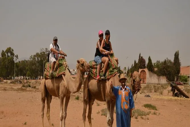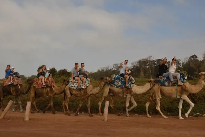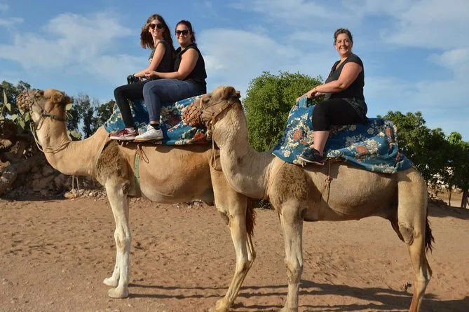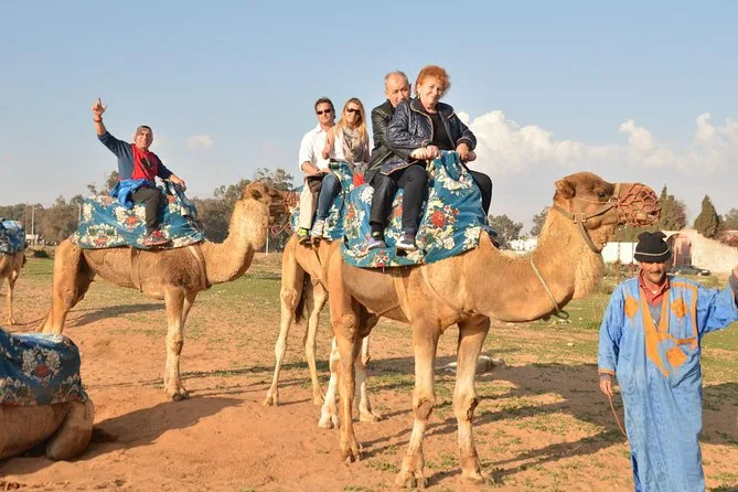 Partez en balade à dos de chameau sur les sentiers du village d’Agadir et à travers les eucalyptus avec un guide local qui rend tout simple. Enfilez de vrais costumes nomades pour des photos fun, observez les oiseaux au bord de la rivière Souss, et terminez par un thé à la menthe et des pâtisseries marocaines au ranch — des instants précieux à garder en mémoire bien après votre croisière.