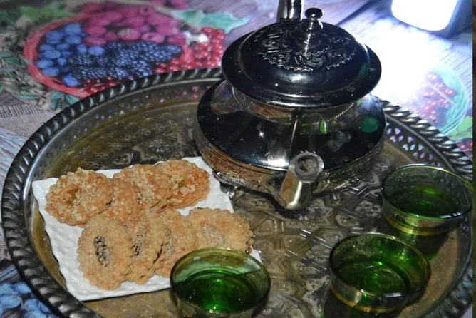 La visite inclut un thé à la menthe marocain et des pâtisseries servies au ranch après la balade.