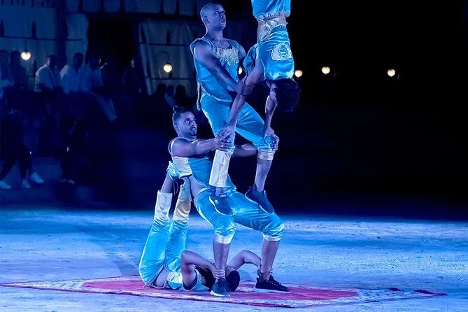Votre soirée comprend le transfert depuis votre hébergement à Agadir en véhicule climatisé avec WiFi à bord. Vous dégusterez un repas marocain en trois plats tout en profitant des spectacles live d’artistes locaux avant de rentrer une fois la fête terminée.