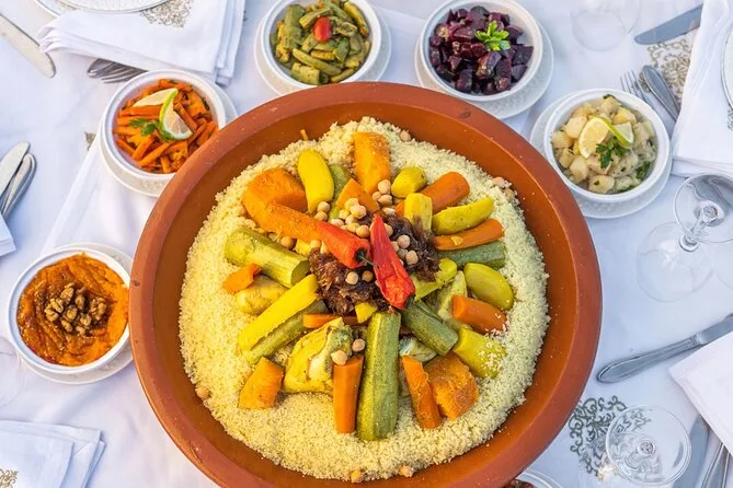 Un repas marocain en trois plats est proposé, avec tajine et entrées locales.