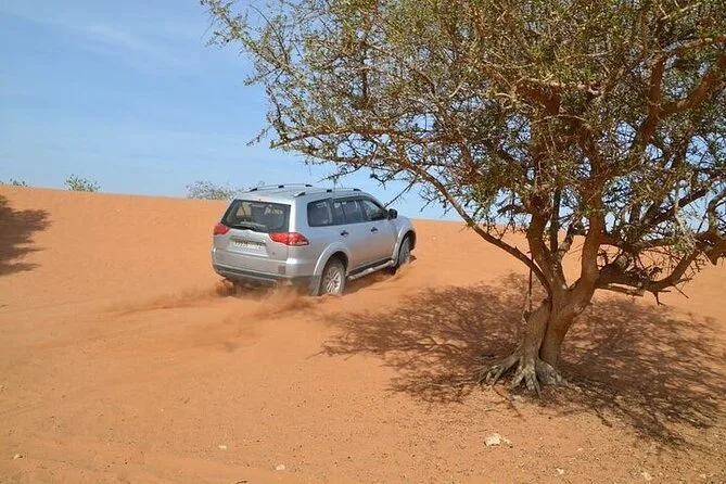 Votre transport en 4x4 climatisé, le déjeuner traditionnel chez l’habitant, et toutes les étapes prévues — grottes de Sidi R'bat, bananeraies, oasis, et médina de Tiznit — sont inclus dans votre réservation.
