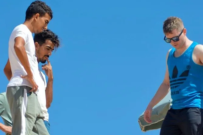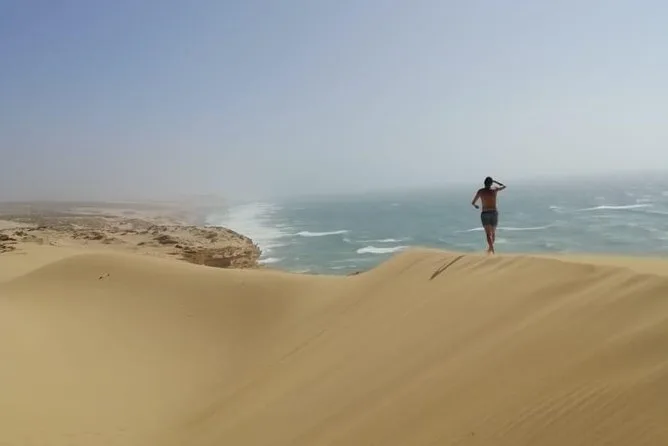 Commencez par une balade tranquille dans un canyon caché près d’Agadir avant de vous lancer sur les dunes de Timlaline pour du vrai sandboard — aucun niveau requis. Les guides locaux vous apprennent les bases (et rient avec vous si vous tombez), avec une pause gourmande autour de bananes locales. Un moment pour souffler et profiter avant le retour.