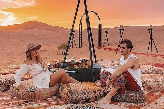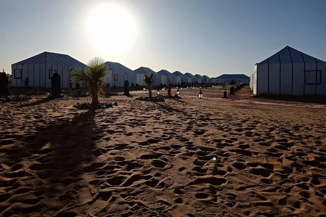 Ce voyage comprend le transport privé en véhicules agréés climatisés, tous les hébergements dans des hôtels ou riads marocains charmants, des visites guidées avec des experts locaux dans chaque ville, une balade à dos de chameau dans le Sahara, la plupart des petits-déjeuners et certains dîners (dont des soirées spéciales sous tente dans le désert), ainsi que les transferts aéroport. L’accès aux fauteuils roulants est possible partout — dites-nous simplement vos besoins pour que tout soit organisé au mieux.