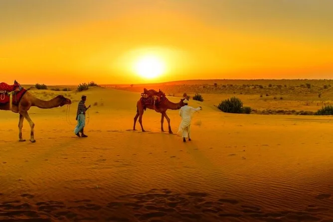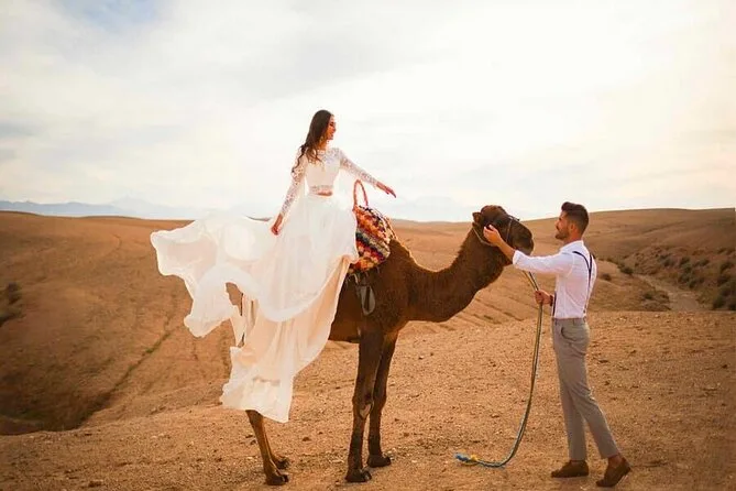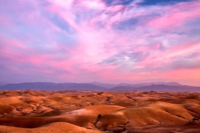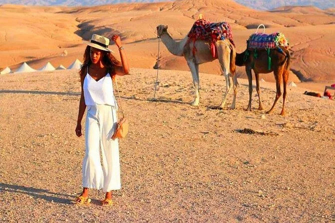 Votre soirée comprend la prise en charge à votre hôtel de Marrakech en véhicule climatisé, une balade guidée à dos de chameau dans le désert d’Agafay au coucher du soleil, ainsi qu’un dîner marocain traditionnel en 3 plats au camp avant le retour à votre hébergement plus tard dans la soirée.
