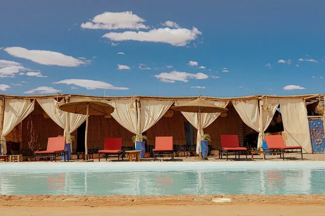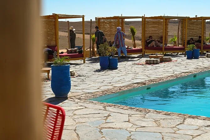 De retour au camp Oasis Sky, certains se sont jetés dans la piscine — j’ai hésité (l’eau était plus fraîche que prévu), mais j’ai fini par tremper les pieds pendant que d’autres s’amusaient. Le dîner est arrivé fumant : une soupe harira parfumée au cumin et à la tomate, puis un tajine de poulet aux olives et citron fondant à souhait. On a mangé dehors sous les lanternes pendant que des musiciens berbères jouaient près du feu. À un moment, quelqu’un a fait une danse du feu incroyable — j’ai failli faire tomber mon thé en le regardant tourner les flammes dans la nuit. C’était un peu irréel, pour être honnête.