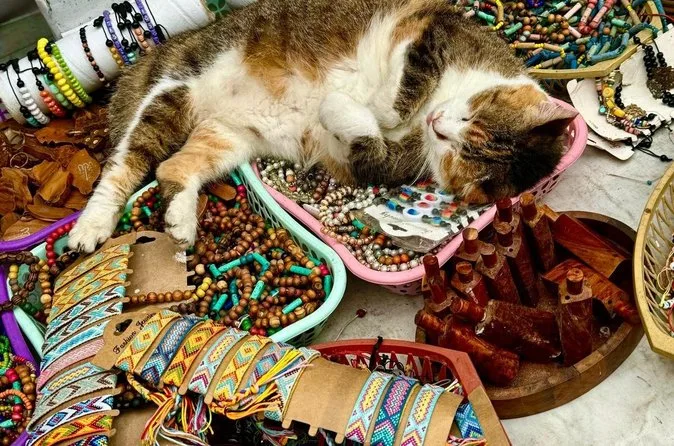 Le premier aperçu d’Essaouira ressemble à un décor de cinéma — murs blancs, volets bleus face à l’océan. On avait environ quatre heures pour flâner (à la fois long et court), alors j’ai suivi le cri des mouettes jusqu’aux remparts de la Skala. Le vent marin y est fou ; mes cheveux en bataille, je m’en fichais. En bas, les pêcheurs criaient sur leurs caisses de poissons — surtout des sardines — et des chats les regardaient comme s’ils étaient chez eux. J’ai acheté du poisson grillé à un stand, sans savoir exactement ce que c’était. Salé, fumé, parfait avec un peu de citron.
