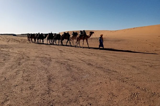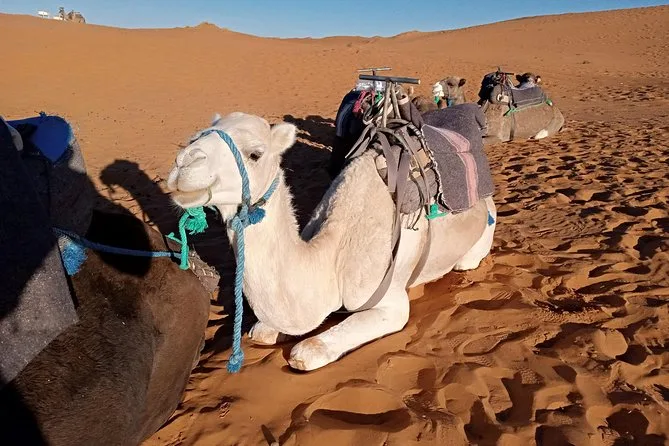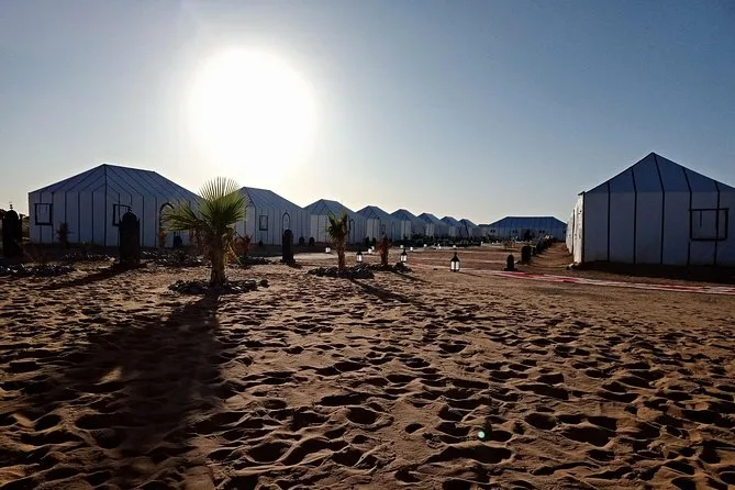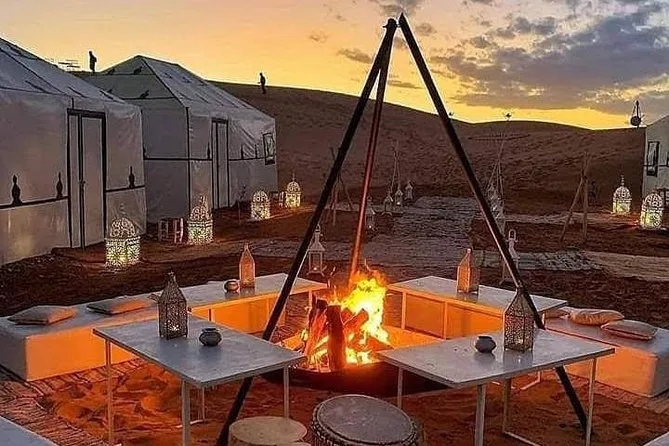 Votre nuit dans une tente privée de luxe (avec vrais lits et salle de bain), tous les repas (dîner & petit-déjeuner), la balade à dos de chameau au coucher du soleil, la musique live autour du feu, ainsi que le transport aller-retour depuis Fez avec un chauffeur-guide expérimenté sont inclus.