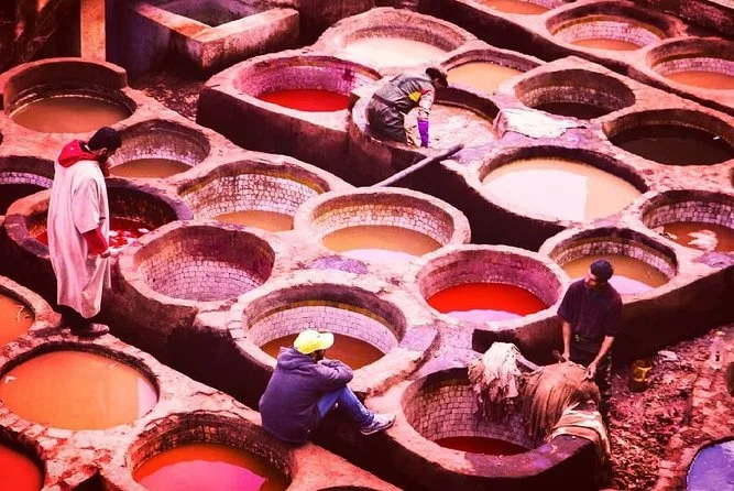 Le petit-déjeuner à Meknès, c’était du pain épais avec du miel et du thé à la menthe avant de partir pour Volubilis. Les mosaïques y sont encore éclatantes après des siècles — notre guide nous a montré un motif avec des dauphins que beaucoup de visiteurs ne remarquent même pas. À Fès, se perdre fait partie du charme ; plus de 9 000 ruelles serpentent dans la médina. Des ânes se faufilent en transportant de tout, des peaux de cuir aux cagettes d’oranges. Les tanneries ont une odeur forte — terreuse et piquante — mais voir les artisans teindre le cuir à la main vaut le détour. On a goûté la pastilla au déjeuner (une tarte sucrée-salée) et plus tard, on a observé des potiers façonner des carreaux pour les fameuses fontaines marocaines.