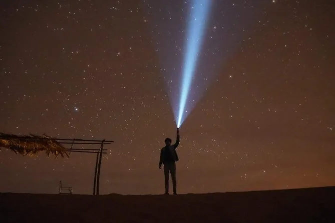 Pas besoin d’équipement particulier — juste des lunettes de soleil, de la crème solaire, des chaussures confortables pour marcher sur le sable, et peut-être un foulard pour le soleil ou la poussière lors des balades à dos de chameau.