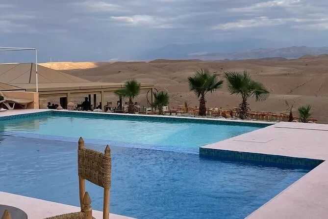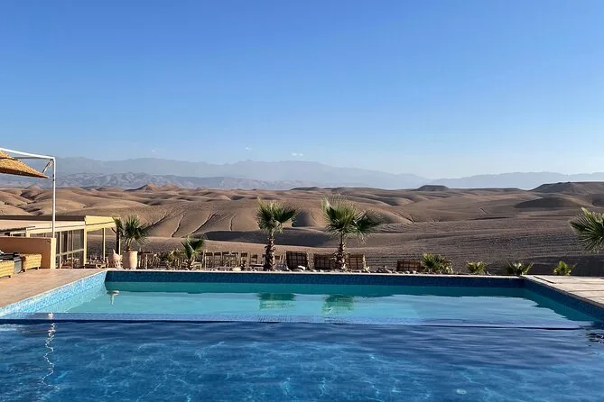 Vous nagerez sous le grand ciel marocain près de Marrakech, partagerez des rires autour de plats berbères sous tente, chevaucherez chameaux ou quads dans la poussière d’Agafay, et terminerez par un spectacle musical sous lanternes si vous choisissez le dîner. Attendez-vous à la chaleur des locaux et à de petites surprises — comme le silence si particulier à dos de chameau.