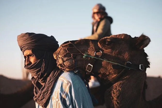 Les chameaux avancent plus lentement, se balançant doucement alors que le soleil commence à disparaître derrière les collines. Mon chameau s’appelait Mouna ; elle tournait souvent la tête vers moi comme pour vérifier que j’étais toujours là. Il y a ce moment où tout le monde se tait, à part le doux bruit des sabots dans le sable — une trentaine de secondes où personne ne parle parce que c’est presque sacré. Puis quelqu’un éternue ou rigole et tout redevient normal. Si vous restez pour le dîner et le spectacle, vous profiterez de la musique sous les lanternes et de danseurs qui gardent le sourire malgré leurs costumes lourds. La nuit, il fait frais ici — pensez à prendre un vêtement chaud si vous venez tard.