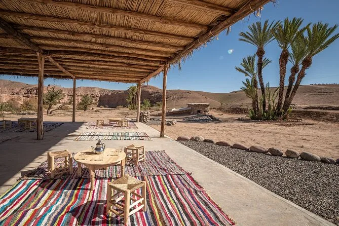Votre journée comprend la prise en charge et le retour à l’hôtel à Marrakech, tout l’équipement pour la balade en chameau et quad (casques inclus), boissons fraîches et thé marocain avec les locaux, wifi et casiers au camp de base, accompagnement par des guides sympathiques, et un déjeuner traditionnel tagine ou couscous avant le retour en ville.
