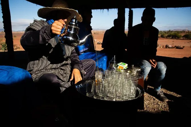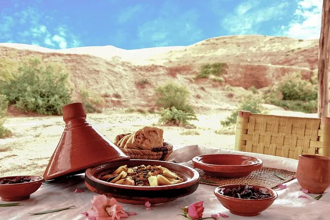 Un déjeuner marocain traditionnel vous attend, généralement un tagine ou un couscous servi dans une maison berbère locale.