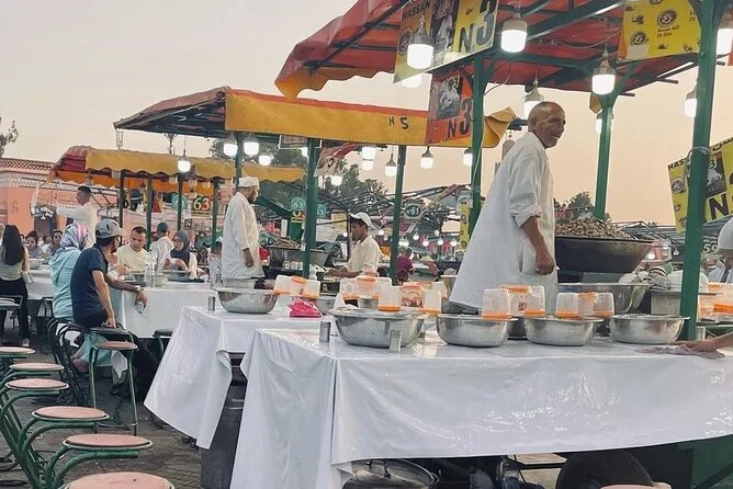 Partez à la découverte des saveurs nocturnes de la médina de Marrakech : msemen tout juste sortis de la poêle, bœuf tangia mijoté des heures, pâtisseries au miel… Rires avec les locaux, histoires derrière chaque plat racontées par votre guide, et cette sensation unique de manger comme les habitants. Plus qu’une visite, une immersion dans le rythme vivant de la ville la nuit.