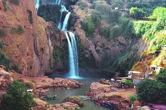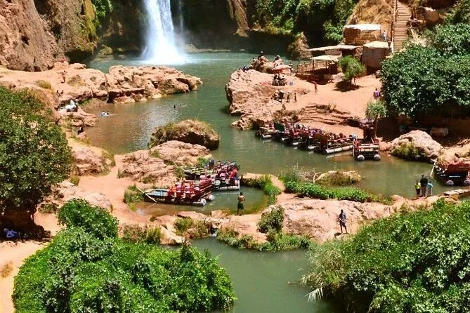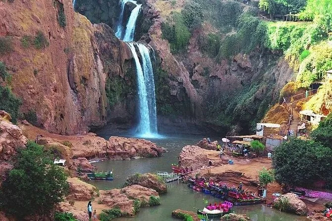 Votre journée comprend la prise en charge à Marrakech en véhicule climatisé, une randonnée guidée aux cascades d’Ouzoud, une courte traversée en bateau, et un moment pour déjeuner avec vue sur les chutes avant le retour en minibus l’après-midi.