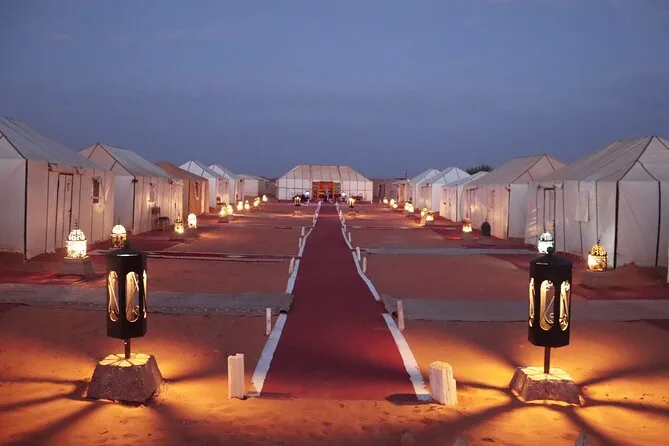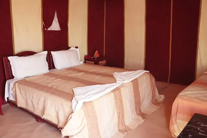 Vous passerez une nuit à la Kasbah Dades Amazigh ou équivalent, puis une nuit en tente privée dans un camp du désert Erg Chebbi (salle de bain partagée).