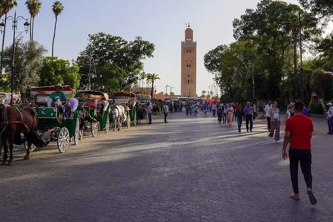 Vous découvrirez la mosquée Koutoubia, le hammam Mouassine, la place Jemaa el-Fna, ainsi que des quartiers anciens et des souks de la Médina.