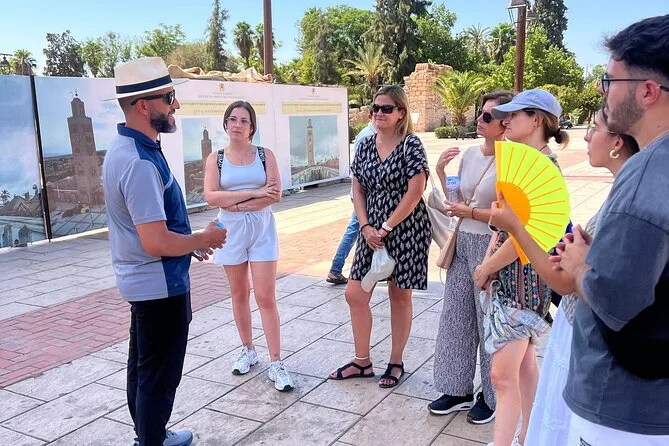 Vous verrez la mosquée Koutoubia (extérieur), le Palais Bahia (entrée payante), le quartier du Mellah, la place Jemaa el-Fna et plusieurs souks de la médina de Marrakech.