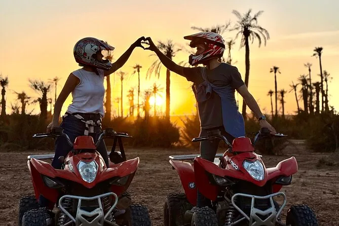 Ressentez le sable sur votre peau et le vent dans les cheveux en explorant la Palmeraie de Marrakech en quad avec un guide local. Dégustez un thé à la menthe sucré sous une tente dans le désert de Jbilet, profitez de la prise en charge à l’hôtel si vous êtes en centre-ville, et vivez des instants qui restent gravés bien après la poussière retombée.