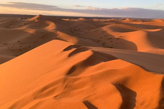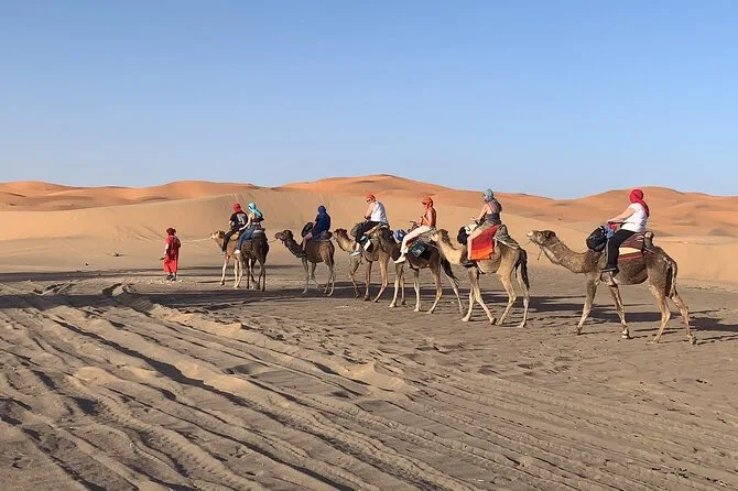 Traversez l’Atlas marocain depuis Marrakech avec un guide local, découvrez des kasbahs ancestrales, partez en trek à dos de chameau dans les dunes d’Erg Chebbi et dormez sous les étoiles du Sahara dans un camp de luxe. Attendez-vous à une hospitalité berbère chaleureuse, des dîners tajine au coin du feu, et des souvenirs qui restent longtemps après avoir secoué vos chaussures.