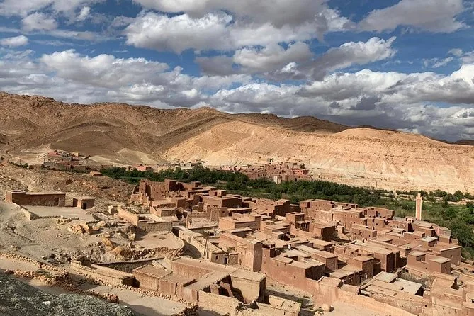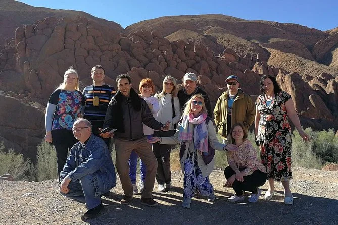 Votre voyage comprend la prise en charge privée à Marrakech, tous les transports en véhicule climatisé à travers les montagnes de l’Atlas et les routes du désert marocain, un chauffeur-guide expérimenté (polyglotte si besoin), deux nuits d’hébergement (un riad dans la vallée du Dadès et une tente berbère au camp Mohayut Bivouac ou similaire), les dîners chaque soir avec options végétariennes sur demande, un foulard pour le désert, ainsi qu’un stockage sécurisé de vos bagages principaux pendant que vous partez en trek à dos de chameau dans les dunes d’Erg Chebbi.