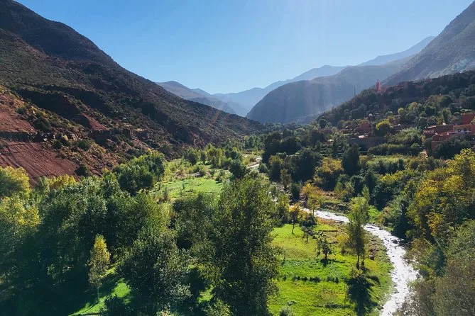 Votre journée comprend la prise en charge et le retour à l’hôtel à Marrakech en minivan ou 4x4 confortable avec un guide local expérimenté ; de l’eau en bouteille ; un thé à la menthe au bord d’un ruisseau de montagne ; un déjeuner maison chez une famille berbère (avec options végétariennes sur demande) ; toutes les taxes locales ; ainsi que du temps pour flâner dans les villages ou randonner à votre rythme avant de redescendre à travers les vallées de vergers en fin de journée.