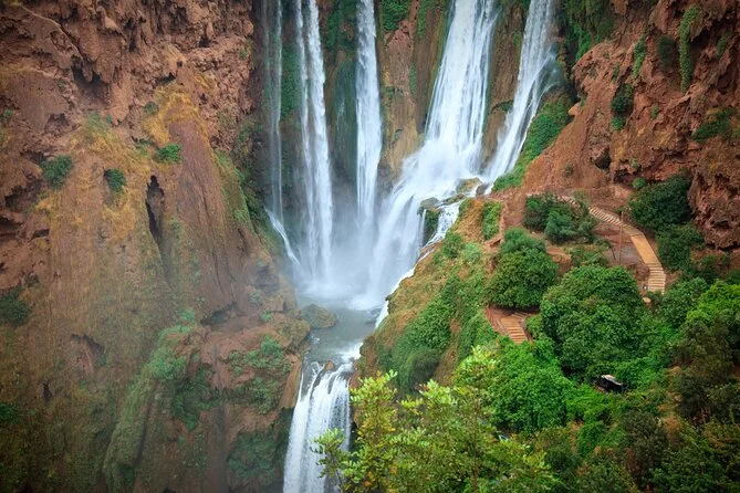 Votre journée comprend la prise en charge à l’hôtel ou riad à Marrakech avec transfert retour en véhicule climatisé, assurance voyage, randonnée guidée autour des cascades d’Ouzoud avec un guide local qui connaît tous les raccourcis (et les singes), une balade en bateau de 20 minutes jusqu’au pied de la plus haute cascade du Maroc, ainsi qu’un déjeuner marocain traditionnel avec vue sur les eaux tumultueuses avant le retour en fin d’après-midi.