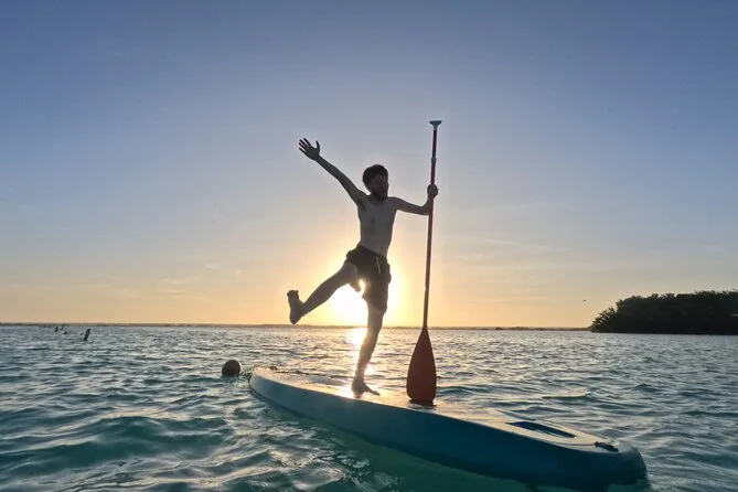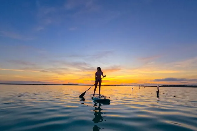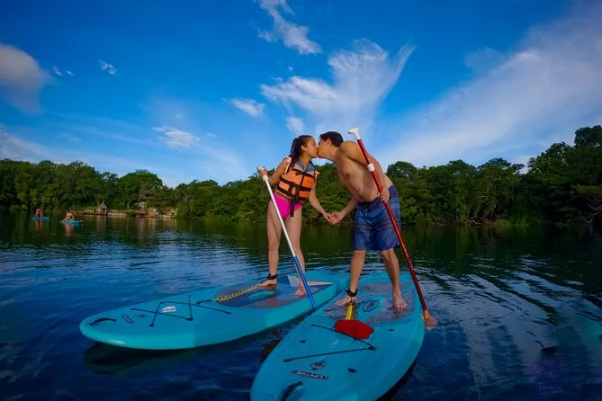 Vous commencerez avant l’aube sur la lagune de Bacalar, pagayant dans le Canal des Pirates avec un guide local qui partage histoires et blagues. Profitez d’un petit-déjeuner sur votre planche—fruits frais, café spécial, tartines de Nutella—et d’une séance de méditation au milieu des chants d’oiseaux et de l’eau calme. Photos incluses pour laisser votre téléphone de côté et profiter pleinement.