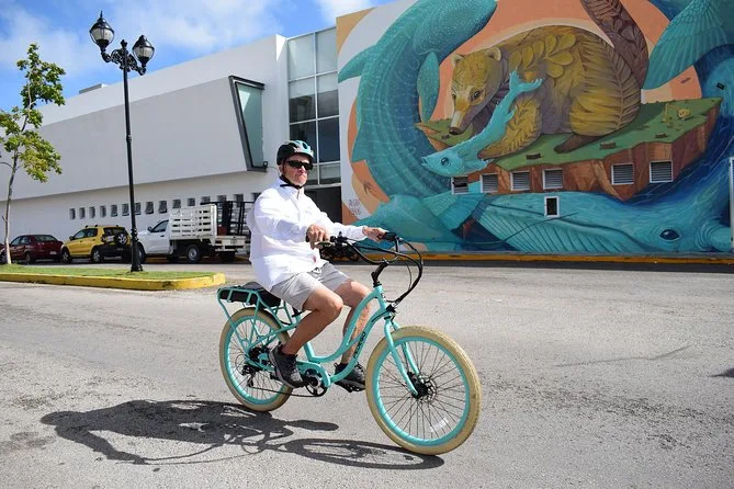 Partez en balade à vélo électrique dans les rues colorées de Cozumel avec un guide local qui connaît tous les raccourcis et anecdotes. Goûtez trois tacos authentiques en centre-ville et découvrez la vie quotidienne de l’île — des avions de la Seconde Guerre mondiale aux fresques cachées — le tout en une demi-journée inoubliable.