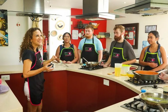Votre expérience comprend tous les ingrédients pour le menu choisi (avec options végétariennes/véganes si besoin), l’utilisation d’un poste de cuisson personnel dans l’école du chef Coty à Playa del Carmen, un repas complet avec vin ou bière, ainsi que la dégustation de tequila et mezcal pour finir — avec les recettes à emporter chez vous.