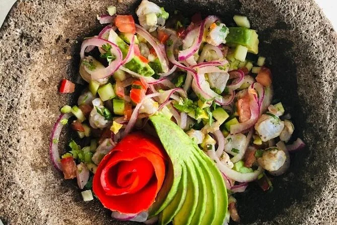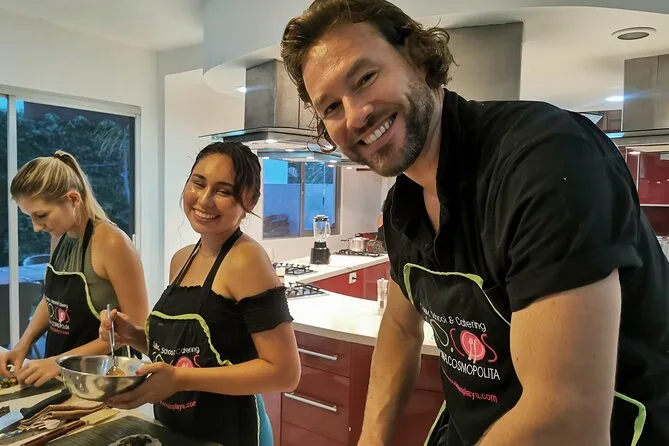 Je suis arrivé dans la cuisine du chef Coty, encore un peu sableux après la plage, sans vraiment savoir à quoi m’attendre. Elle nous a accueillis comme de vieux amis — un câlin, un grand sourire, cette chaleur sincère qu’on ne peut pas feindre. C’est l’odeur qui m’a frappé en premier : poivrons grillés et un parfum d’agrumes que je n’arrivais pas à identifier. Nous étions six autour du plan de travail, un peu timides au début, mais Coty nous a vite mis à couper et à rigoler. Elle racontait les recettes de mole de sa grand-mère pendant qu’on essayait (et échouait souvent) à trancher la mangue comme des pros. Je ne suis toujours pas sûr que mon ceviche avait la bonne tête, mais il avait ce goût vif et frais — citron vert, patate douce, poisson fondant presque en bouche.