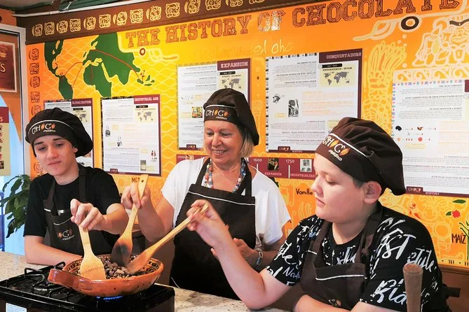 Votre journée comprend les fèves de cacao pour la fabrication manuelle, tous les ingrédients du chocolat ainsi que les garnitures de votre choix, l’utilisation d’un tablier et d’un chapeau (même si le vôtre glisse un peu), et l’accompagnement chaleureux de l’équipe locale tout au long de l’atelier au ChocoMuseo.