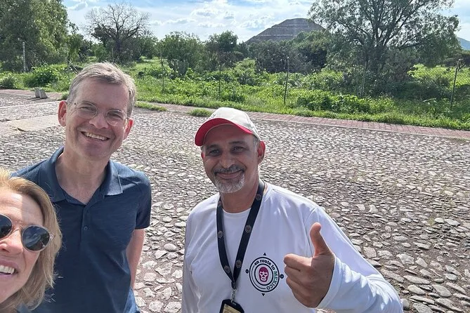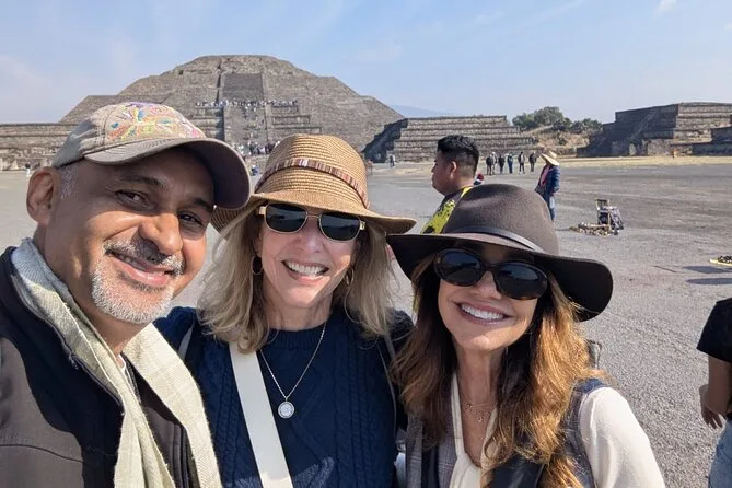 En fin d’après-midi, on était fatigués mais dans ce bon sens où la tête est pleine et les pieds un peu douloureux. Je repense souvent à cette vue depuis l’Avenue des Morts — tout ce ciel et cette pierre qui s’étendent devant vous. Pendant cette excursion d’une journée de Mexico à Teotihuacan et la Basilique, rien n’était précipité ; on pouvait s’arrêter quand on voulait ou poser toutes les questions qui nous venaient (j’en avais beaucoup). Ce n’était pas parfait — j’ai renversé de l’eau sur ma chemise en ouvrant une bouteille — mais honnêtement, ça rendait l’expérience encore plus authentique.
