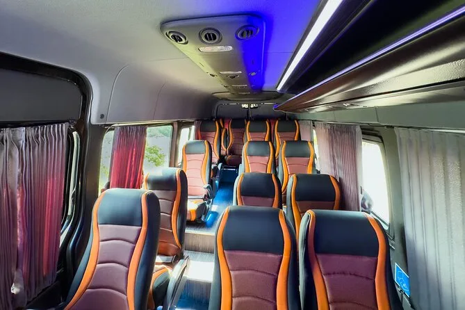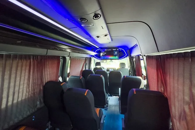 Non, il n’y a pas de Wi-Fi à bord pour le moment, mais vous aurez de l’eau en bouteille et la climatisation pour votre confort pendant le trajet.