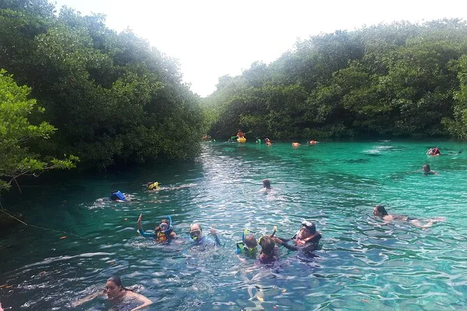 Vous nagerez dans une rivière souterraine près de Tulum, puis flotterez dans les eaux claires du Casa Cenote entouré de mangroves et de poissons. Un guide local s’occupe de tout – de la prise en charge au déjeuner – pour que vous profitiez pleinement de ces instants uniques et apaisants.