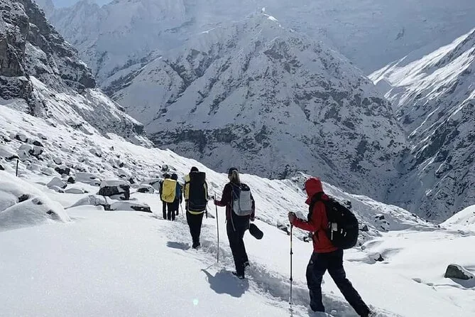 Votre voyage inclut tous les transferts depuis Pokhara — trajets en voiture privée et jeep partagée le quatrième jour — ainsi qu’un guide anglophone qui connaît parfaitement ces sentiers. Les permis (carte TIMS incluse), la prise en charge à l’hôtel et les nuits en lodge sont organisés pour que vous puissiez vous concentrer sur la marche et profiter pleinement.