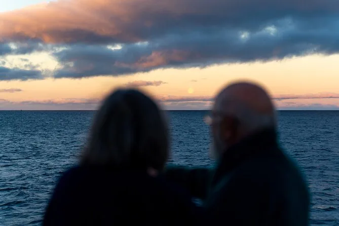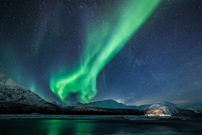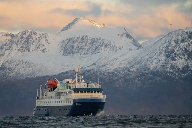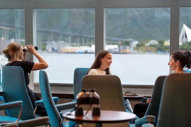 Votre voyage comprend une croisière aller-retour au départ de Tromsø avec tous les repas — dîner dans un restaurant arctique, petit-déjeuner et déjeuner — ainsi que café, thé et snacks à volonté. Vous aurez une cabine face à l’océan pour la nuit, une combinaison thermique flottante pour le pont, une chasse aux aurores guidée avec conférences dans le salon panoramique, et une observation des baleines avec des guides professionnels qui partageront leurs connaissances avant le retour au port.