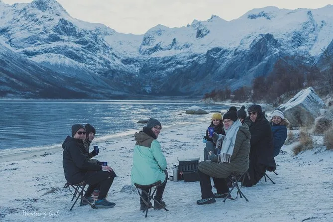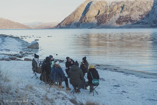 Votre journée comprend le transport depuis Tromsø à travers les célèbres fjords de Kvaløya avec toutes taxes incluses, une participation active à des projets de science citoyenne avec un guide local, un déjeuner léger maison (avec options sans gluten et vegan sur demande), du café ou thé chaud partagé en plein air, et des photos souvenirs envoyées par email après votre retour en ville.