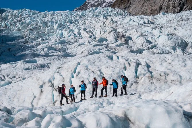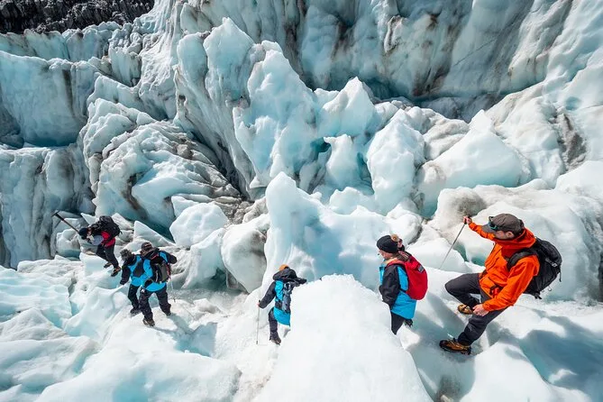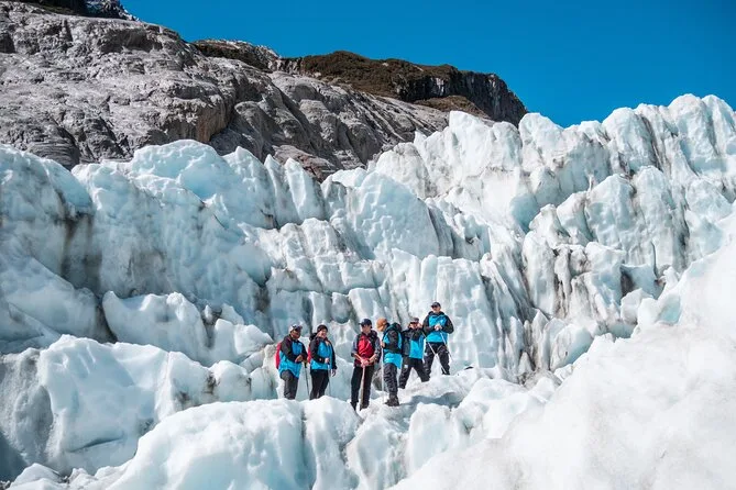 Votre journée comprend deux vols en hélicoptère vers Fox Glacier et retour, ainsi que tout le matériel nécessaire : chaussures en cuir, chaussettes, crampons, veste et pantalon imperméables si besoin. Vous serez accompagnés par des guides expérimentés qui connaissent chaque recoin de la glace et s’occupent de votre sécurité pour que vous puissiez simplement profiter de ces paysages glacés hors du commun.
