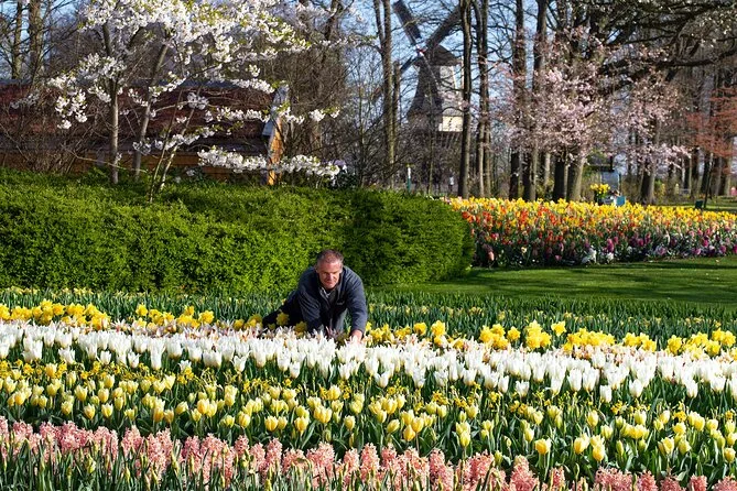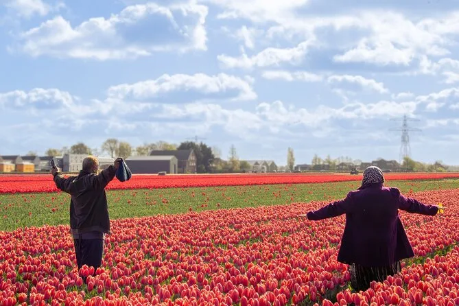 Votre journée comprend la prise en charge au centre d’Amsterdam à « This is Holland », la visite guidée à la ferme de tulipes de Daan & Anja (avec dégustation de tarte aux pommes maison), tous les transports en bus climatisé à travers les champs de fleurs, une croisière d’une heure au fil des moulins à vent et villages historiques, les billets d’entrée aux jardins de Keukenhof ainsi qu’une carte officielle pour vous perdre parmi des millions de fleurs avant de rentrer confortablement à Amsterdam.