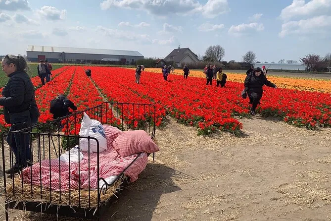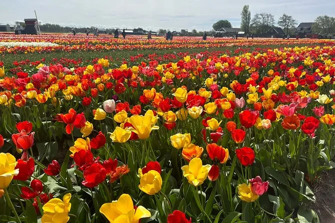 Vous découvrirez les jardins fleuris de Keukenhof avec accès coupe-file, visiterez une ferme de bulbes près de Lisse, dégusterez du fromage hollandais frais à Zaanse Schans et flânerez dans le port de Volendam — le tout avec un guide local et un transport privé. Rires, chaussures boueuses et explosion de couleurs garanties.
