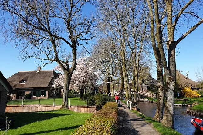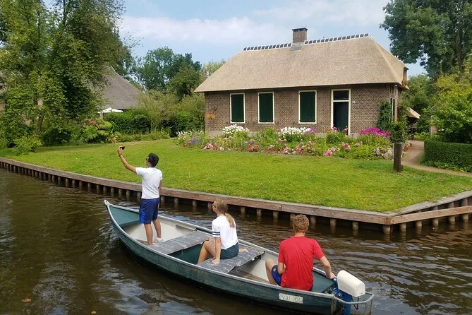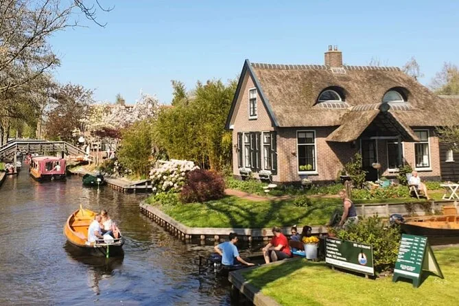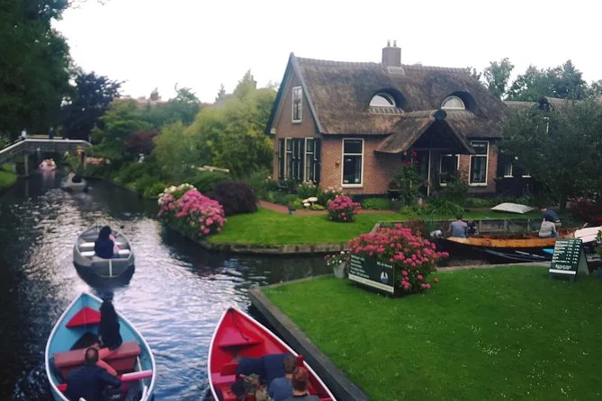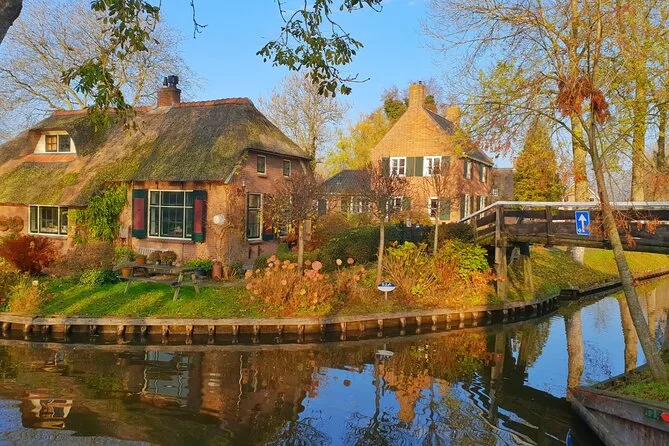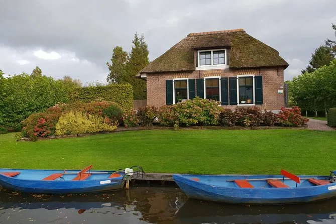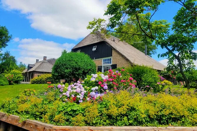 Votre journée comprend le transfert aller-retour depuis Amsterdam en minibus ou bus climatisé, une heure de balade en petite barque électrique à piloter vous-même sur les canaux de Giethoorn, une visite guidée à pied dans les ruelles et sur les ponts du village, ainsi qu’une dégustation de fromages dans l’une des plus grandes fermes du pays — le tout accompagné d’un guide local chaleureux avant le retour à Amsterdam.
