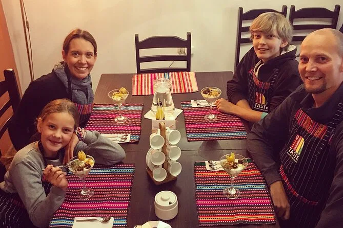 Je ne pensais pas autant m’amuser à préparer un Pisco Sour — secouer le shaker, c’est plus compliqué qu’il n’y paraît. Le repas (déjeuner ou dîner selon votre horaire) s’est transformé en une longue discussion autour de la table sur les recettes de famille et les anecdotes de voyage. Je repense encore à cette première cuillerée de parfait aux fruits ; doux sans être trop sucré, avec un petit croquant dessus. On est repartis le ventre plein et les mains un peu farineuses, en se sentant presque comme des habitants de Cusco le temps d’un instant. Tout n’était pas parfait — mon tiradito était un peu bancal — mais ça n’avait aucune importance.