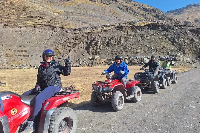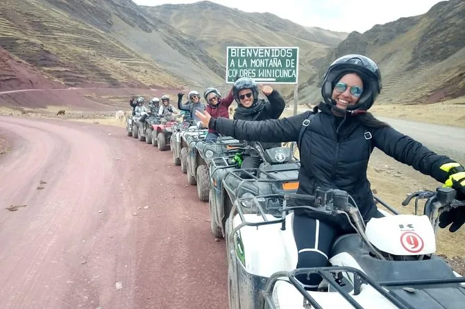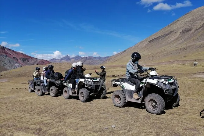 Votre journée comprend la prise en charge tôt le matin dans un hôtel du centre de Cusco, un petit-déjeuner au village de Hanchipacha, le carburant pour les ATV individuels ou partagés ainsi que pour les motos avec chauffeurs jusqu’au point de vue de la Montagne Arc-en-Ciel, un accompagnement par un expert local (avec trousse de premiers secours), un déjeuner copieux dans le district de Cusipata, puis le retour à votre hôtel ou à la Plaza de Armas en milieu d’après-midi.