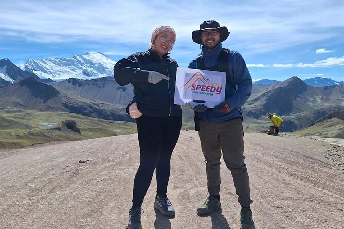 Le vrai plaisir a commencé à Kayrawiri — casques sur la tête, moteurs grondants, le vent froid piquant mes joues alors que nous partions en ATV. Je n’en avais jamais conduit avant (ne le dites pas à ma mère), mais Javier a juste ri et dit « solo sigue el camino » — suis simplement le chemin. Les lamas et alpacas nous regardaient passer comme s’ils avaient déjà tout vu. La balade était bruyante, boueuse et franchement excitante ; je sentais l’herbe mouillée et entendais quelqu’un derrière moi crier de joie à chaque bosse. À Qosqopata, nous avons changé pour des motos avec des chauffeurs pour le dernier tronçon (je me suis accrochée bien fort), puis nous avons fait une petite marche — environ sept minutes ? — jusqu’à la première vue sur la Montagne Arc-en-Ciel.