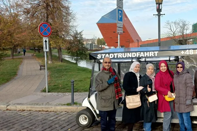Explorez le cœur de Gdańsk en buggy électrique, guidé par un local qui vous raconte les vraies histoires derrière des lieux comme l’église Sainte-Marie ou le Musée de la Seconde Guerre mondiale. Profitez de la ville sans stress ni perte, avec prise en charge incluse pour juste vous installer et laisser défiler l’histoire sous vos yeux.